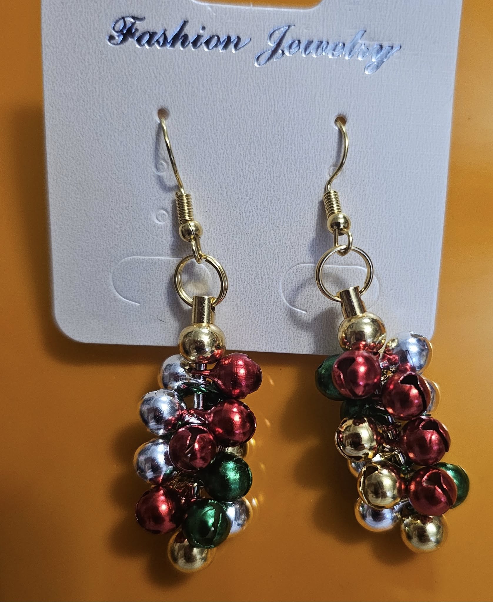 SHORT BEADED BAR EARRING AND CHRISTMAS DANGLES